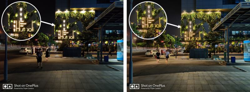 (左:默认模式,右:开启夜景模式)