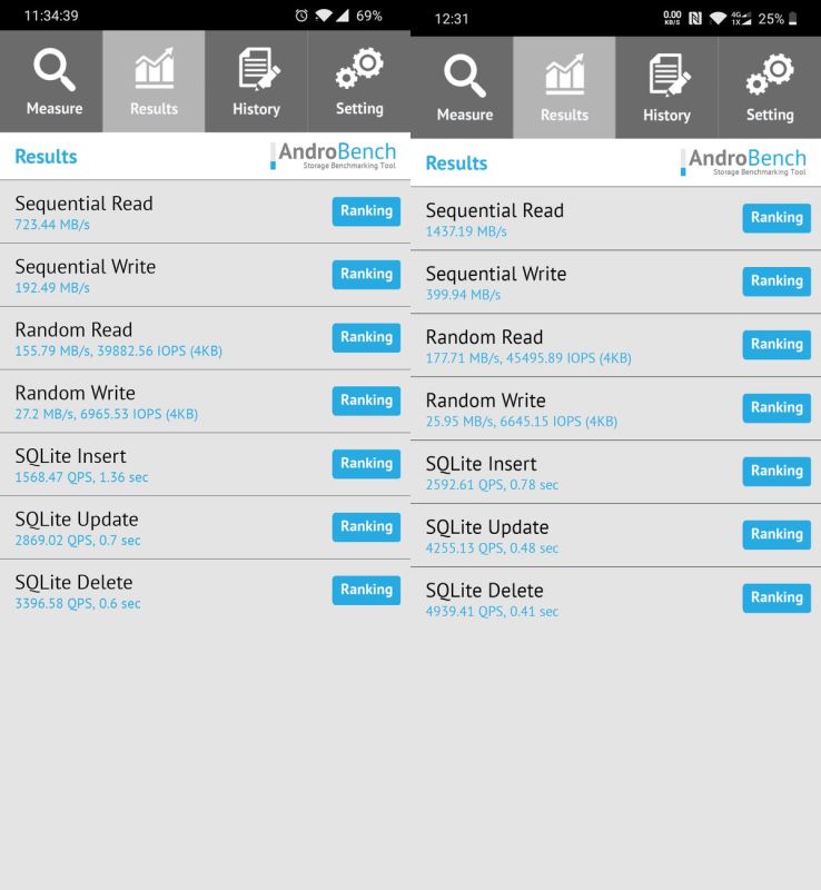 (左:UFS2.1跑分 右:UFS3.0跑分)
