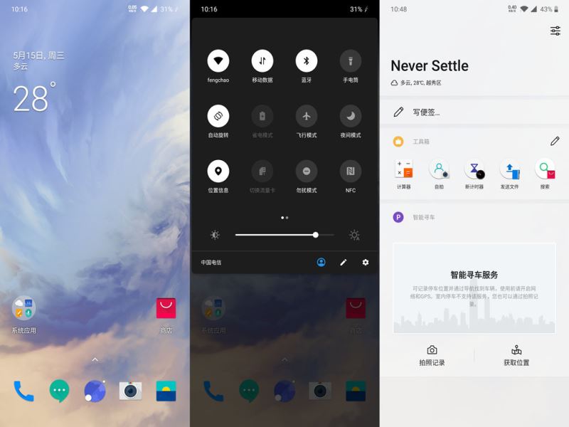 在系统方面,一加一直以:快速与稳定为目标。一加7 Pro上搭载氢OS 9.5版本,基于Android9.0开发,遵循 Material Design 设计规范,UI整体风格偏向于安卓原生风格。