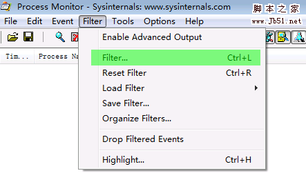 1、启动Process Monitor,选择Fiter菜单中的Fiter