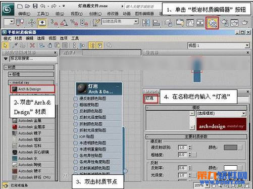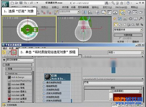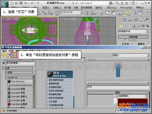 (4)将“灯泡”材质赋予场景中的“灯泡”对象。