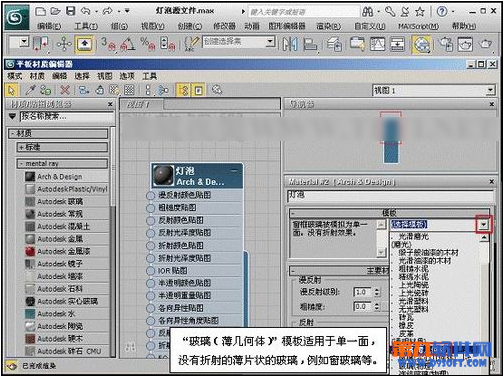 (5)在“模板”卷展栏“选择模板”下拉列表中,为用户提供多种预设的材质,选择“玻璃(薄几何体)”选项。