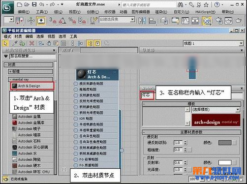 (11)将“灯芯”材质赋予场景中的“灯芯”对象。