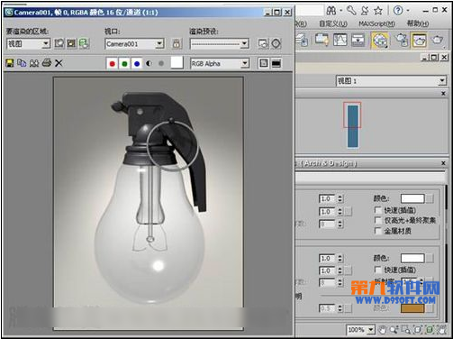(1)运行3ds max 2011,打开素材“灯泡源文件.max”。
