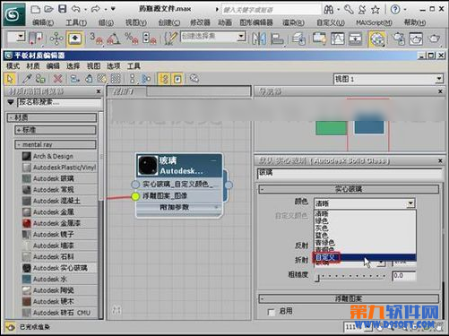 (3)打开“板岩材质编辑器”对话框,将“Autodesk 实体玻璃”材质添加至活动视图,并重命名。