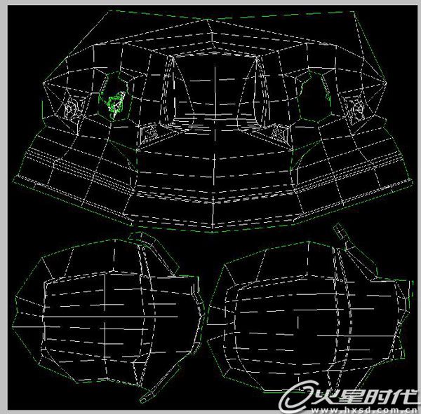 1.在展炮身的UV时,形体稍微复杂些,所以我把炮头和炮身分别进行展开。