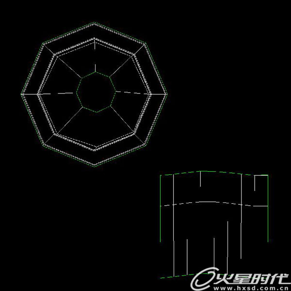 2.炮管用形体合并来做,选择二维线里的N边形,把边数改为8边。