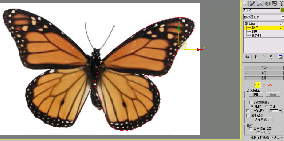 4.用二维线绘制蝴蝶右侧翅膀,如图所示