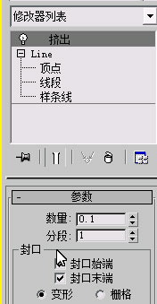 11.在修改面板下勾选以下选项,并设置厚度为0.1.将触角的二维线转成三维对象