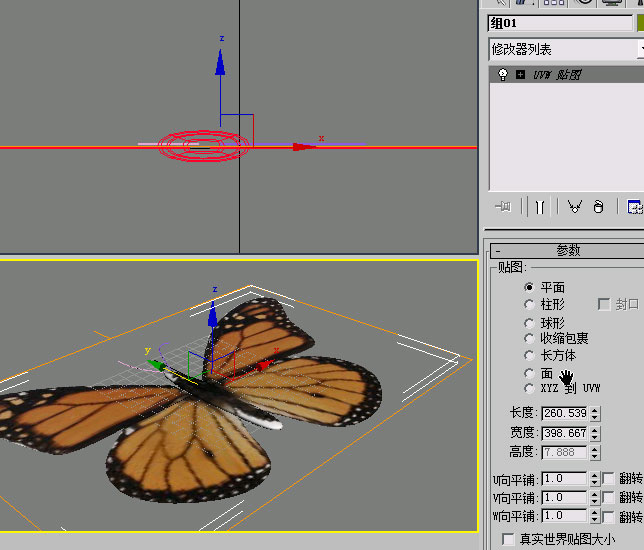 17. 添加UVW贴图,并更改长度、宽度值,使贴图跟模型刚好匹配