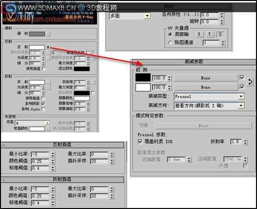 小提示:为反射添加一“衰减”贴图,并定义其相关值。