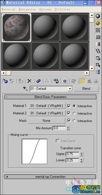 因此用一个材质来表现透光窗帘的阴影是不可能的!这里我用混合材质来做,下面就是方法!~