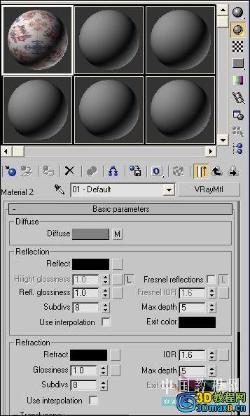 将第二个材质Material2的拆 射 颜色改为全黑,如下图: