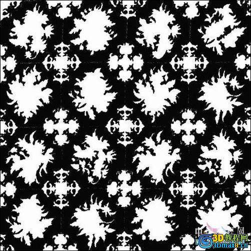 在第三个材质,也就是遮罩里面(Mask)贴上下面的这张图,这就是刚才那张布料做成的,是用photoshop做的,通过去色,魔棒等工具做出来的。这都是很简单的东西,这里就不再细说.