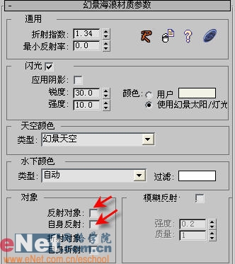 2、回到环境海浪材质参数卷展栏下,调整对象勾选,如图4所示。并将材质赋予海面01。