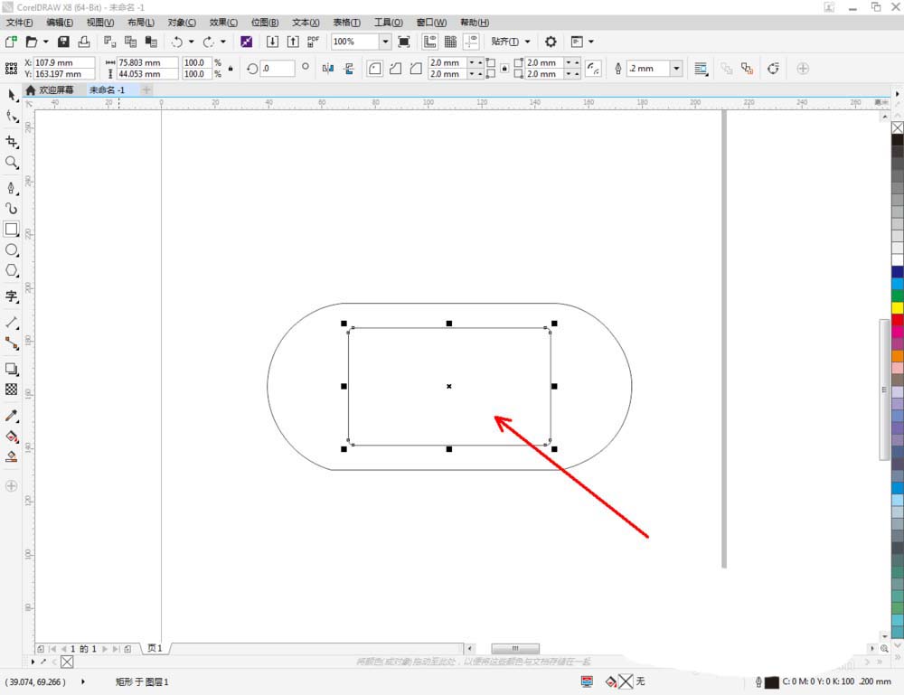 3、点击【矩形工具】,点击【圆角】并设置好圆角参数后,在图示位置绘制一个圆角矩形图案。完成后,调整圆角参数后绘制出另外一个矩形图案(如图所示);
