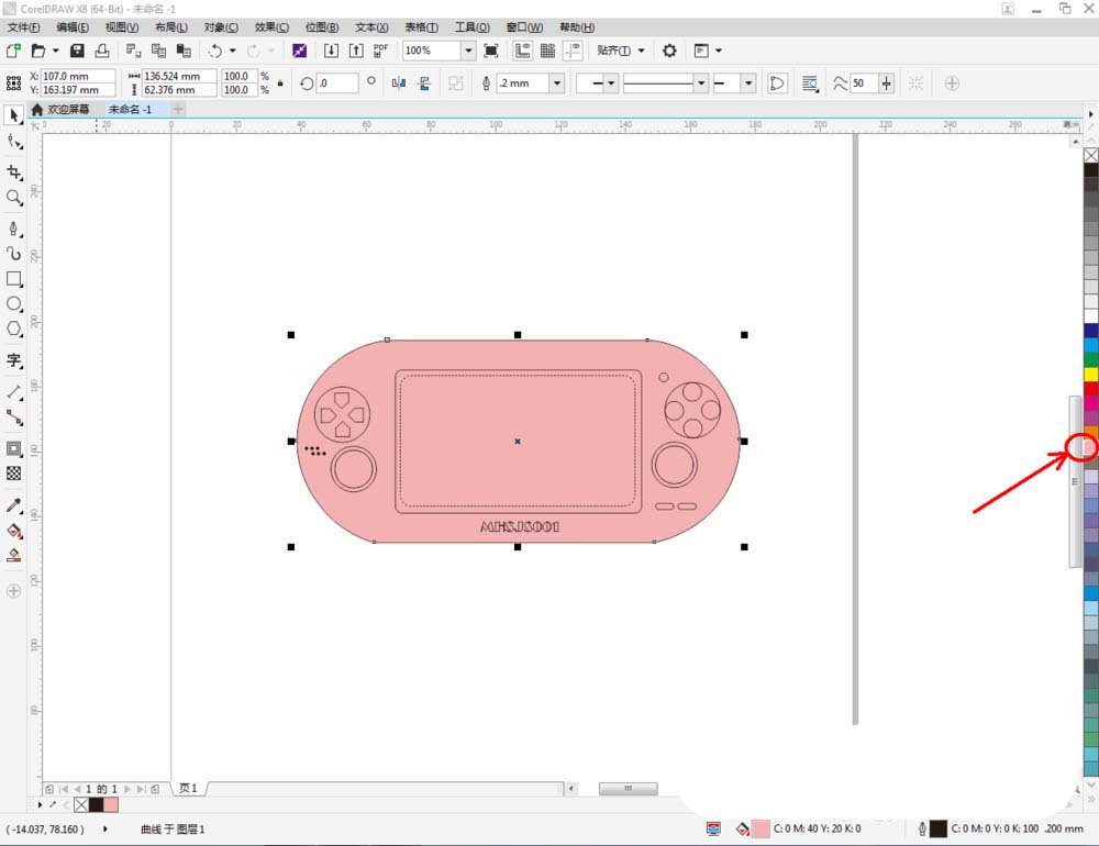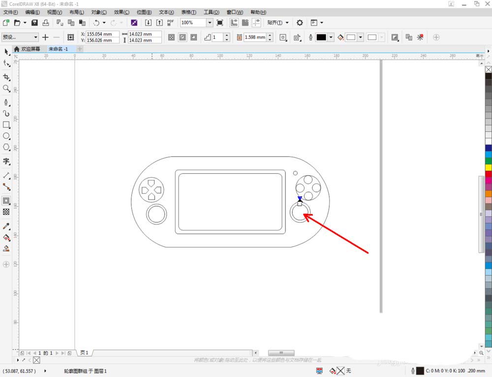 7、最后,按图示对各部分图案进行颜色填充和轮廓宽度设置,这样我们的游戏机图标便全部制作完成。
