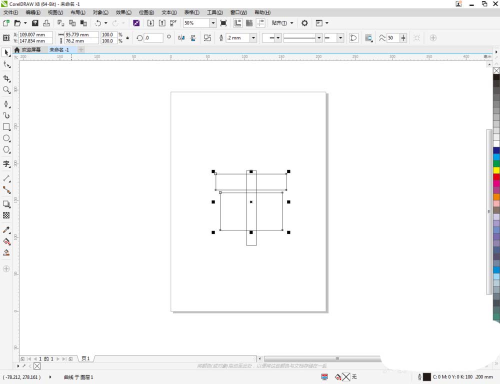 2、点击【矩形工具】按图示在作图区域依次绘制出三矩形图案,并按图示调整好矩形图案之间的位置关系(如图所示);