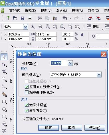 在cd里打开原图片. 在菜单栏里:"位图"-->转换为位图(参图如下)