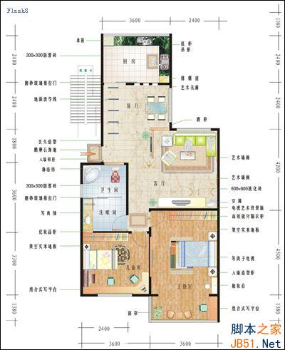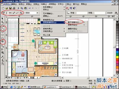 Coreldraw(CDR)设计绘制家庭装修彩色平面布置图实例教程