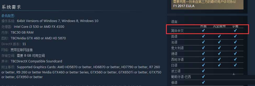[单机游戏] F12017什么配置可以玩_F12017配置要求一览