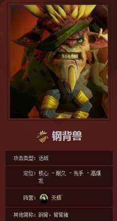 [网络游戏] DOTA2新手推荐英雄攻略_DOTA2刚背兽详解