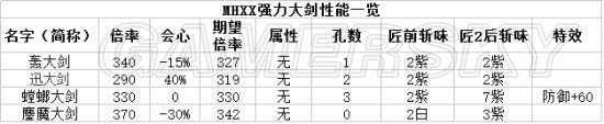 [单机游戏] 怪物猎人XX什么物理大剑强 强力物理大剑数据对比
