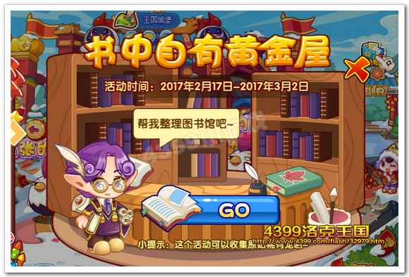 洛克王国书中自有黄金屋活动来袭~还可获得稀有宠物奖励!小洛克们,想知道吗?那就一起跟随小编过来看看吧,祝大家游戏愉快哦... 17-02-17
