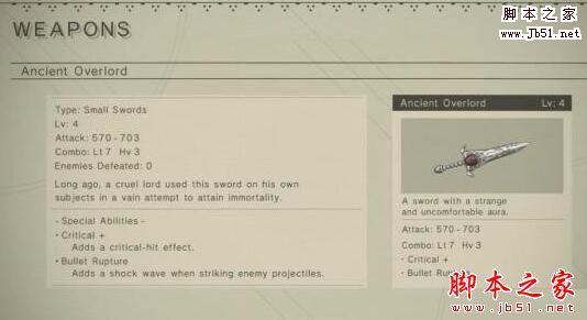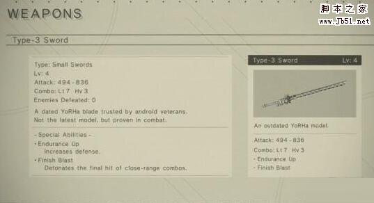 [单机游戏] 尼尔机械纪元机械生命体之剑属性图鉴一览 机械生命体之剑获取方法介绍
