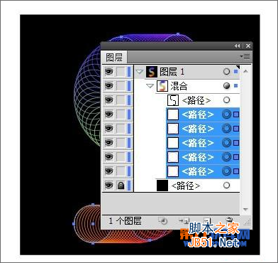 第8步选择所有的圆(在"图层"面板中点击路径后的圆圈,双圈的表示已经选中)