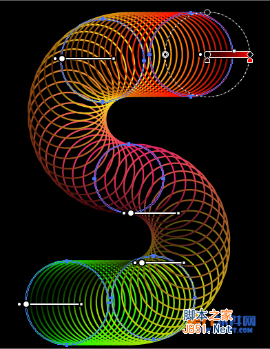 如果你对结果不满意。可以做一些改变。 选择混合对象到对象>混合>释放。 再加入两个圆,并上段新加入的圆直径略有减少(自由变换工具(E))。 请记住,在S形的路径必须是上述所有的圆。