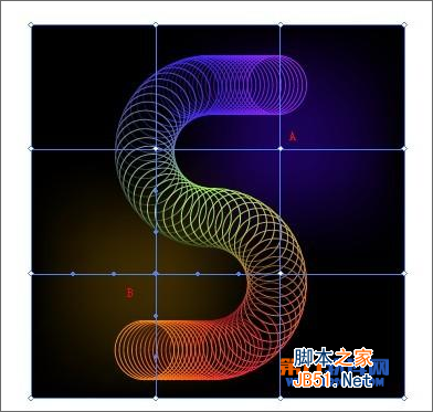 第5步用椭圆工具(L),创建三个大小相同,不同颜色的圆。 圆的中心应该位于点A,B和C的S形路径。然后去对象">"排列">"置于顶层。 将三个圆将放置在最顶层。