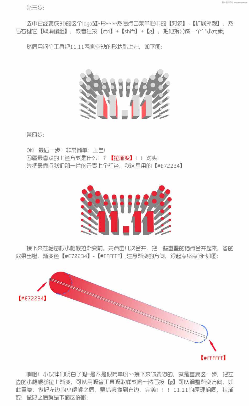 Illustrator制作3D立体风格的2016天猫双11标志logo