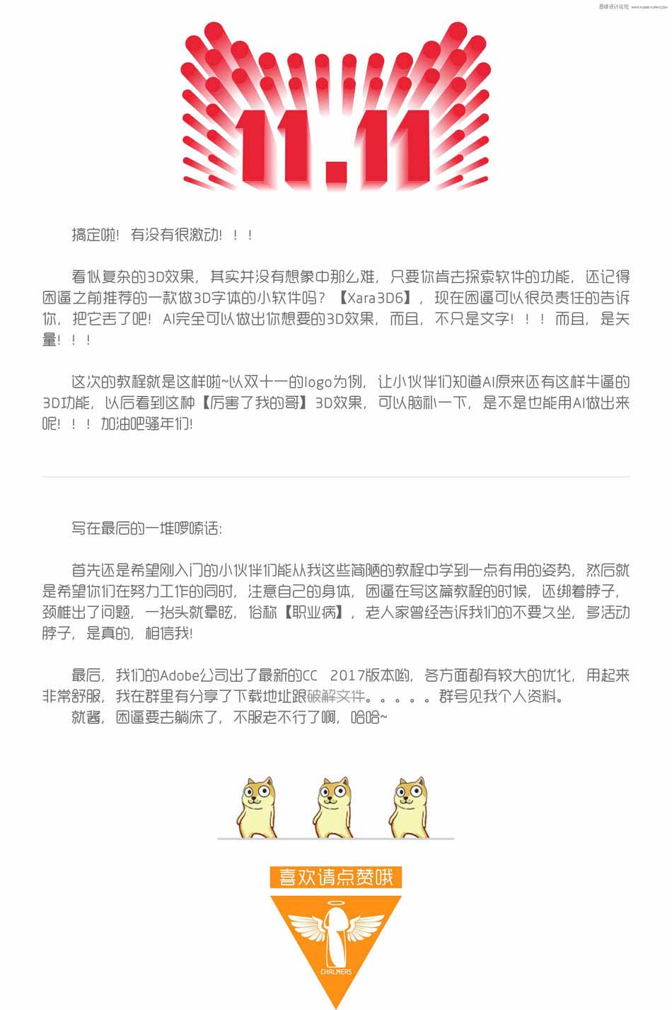 今天小编为大家分享Illustrator制作3D立体风格的2016天猫双11标志logo方法,教程真的很不错,值得大家学习,一起来学习吧: