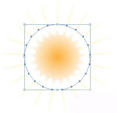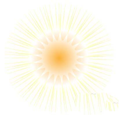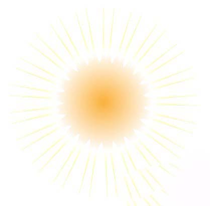 3、设置填充色为(橙色-白色-黄色)的(径向)渐变,并不设描边颜色。如图: