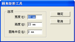 在工具面板中选择矩形工具,按住不放,直到出现一个工具条,选择圆角矩形工具,在文档中点击鼠标左键,弹出一个对话框,做如下设置。