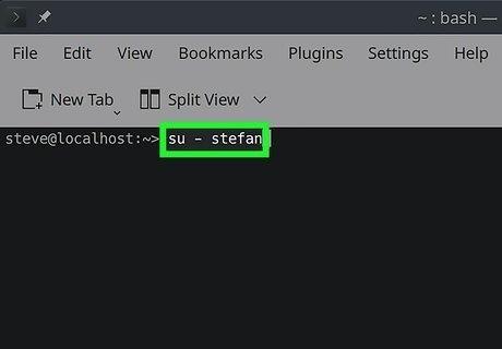 使用su - 用户名来以另一个用户身份登录。在命令行中使用此命令切换到另一个用户。"-"表示您想以用户名登录并假设他们的环境变量、主目录和shell偏好设置。一旦您输入了他们的密码,您的提示符将更改为该用户的提示符。