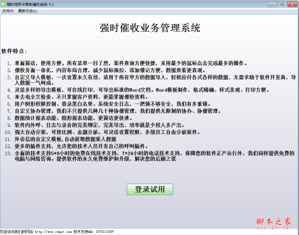 强时信用卡商帐催收系统是一款非常实用的信用卡催收软件。主要针对信用卡拖欠催收,房贷催收和各种贷款催收过程的管理和监督,适用于与银行合作进行信用卡或房贷催收的管理,可以生成相应的日志和录音文件,需要的朋友快来下载吧...