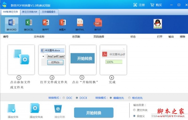 群英PDF转换软件(pdf文件转换成word转换器),您相当于有了WORD转PDF转换器,PDF转WORD转换器,PDF转DOC转换器,PDF转TXT转换器,PDF转HTML转换器,PDF转JPG转换器,PDF转HTML转换器,PDF转FLASH转换器等...