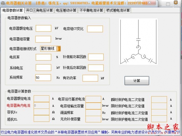 电容器相关计算软件是一款电容计算工具,拥有并联电容器相关的多种常用计算功能,包括电容参数计算、开口三角垫压计算、电压差动计算、不平衡电流计算以及桥式差电流计算...