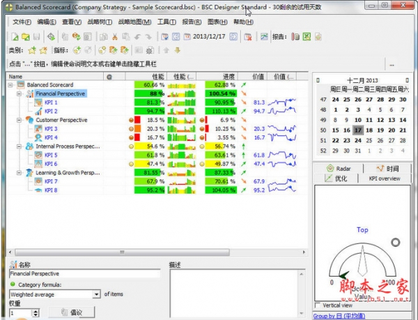BSC Designer是一个很好的手工记分卡替代软件,提供了基本的绩效管理功能,提供必要的创建和管理指标功能,可从MS Excel或SQL数据库导入数据...