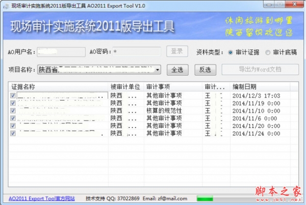 现场审计实施系统2011版导出工具是一款可以将审计现场审计实施系统2011版(AO 2011)生成的审计证据和审计底稿批量导出为doc格式文件的软件...