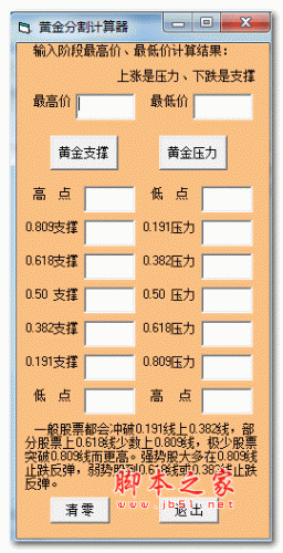 黄金分割计算器是一款计算股票黄金分割点的软件,软件小巧实用,操作简单,安全可靠的用于计算黄金支撑及黄金压力、黄金分割点位,从近期的明显的高点或地点之间做分割...