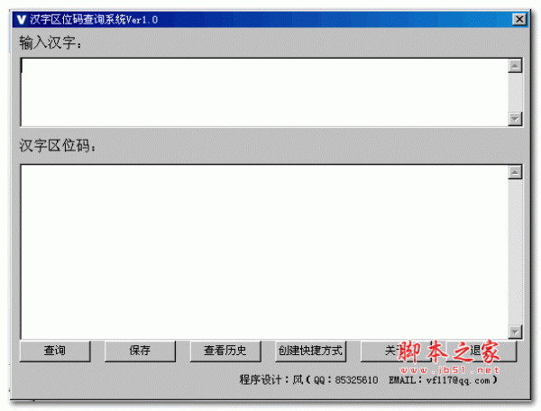 汉字区位码查询系统是一款免费的汉字区位码查询器,通过来自网络的《汉字区位码表》,快速查询汉字区位码,并支持批量查询,没有字数上限,支持自动保存查询结果,方便快捷...