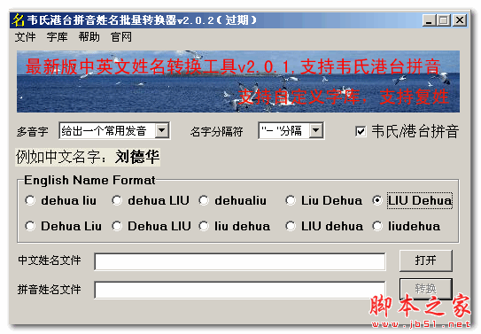 韦氏港台拼音姓名批量转换器 2.0.2 免费绿色版
