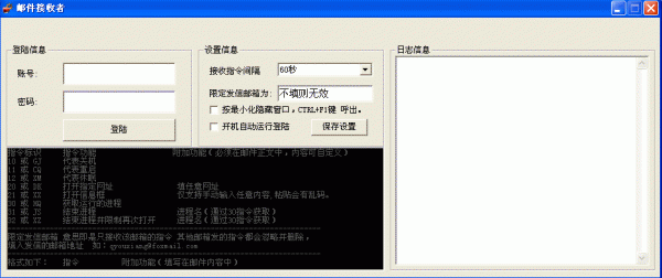 邮件接收者(邮件控股电脑工具)是一款绿色免费的用邮件远程控股电脑的软件。软件功能强大,软件不但可以电脑远程也可以用手机控制电脑...
