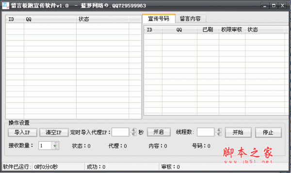 留言板跑宣传软件是一款可以帮助用户在QQ空间批量留言的工具,该软件使用方便,操作简单,用户只需在该qq空间留言群发器中导入COOKIS状态并导入IP代理,然后就可以开始刷留言了,软件实现了全自动留言版留言功能...