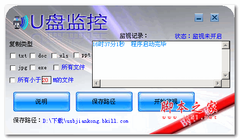 梦真U盘监控器是一个监控U盘插拔事件,并自动复制U盘内文件的小工具,支持设定监控文件类型,小巧易用...