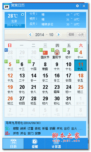 窝窝日历是一款非常实用的桌面日历工具,工具非常的强大,主要功能为可以显示常用的农历和阴历,同时支持天气预报,法定节假日,计算器,定时提醒等功能,非常的实用便捷...
