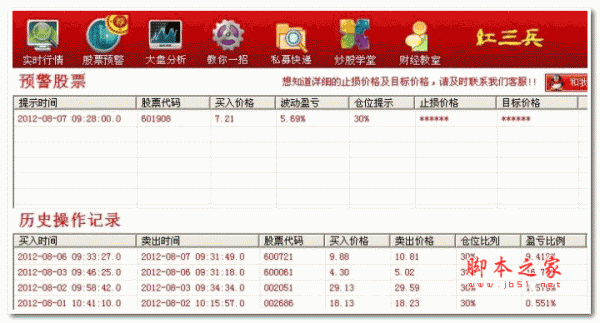 红三兵股票决策系统是一款全智能的股票决策系统,系统引入了多项智能选股模式和专业机构的投资数据,每天在开盘前强势决策一只股票,而且附带买卖点位。系统有一站式指导,智能预警决策,附带手机短信提示,真正意义上做到让股民多赚少亏,稳定收益...